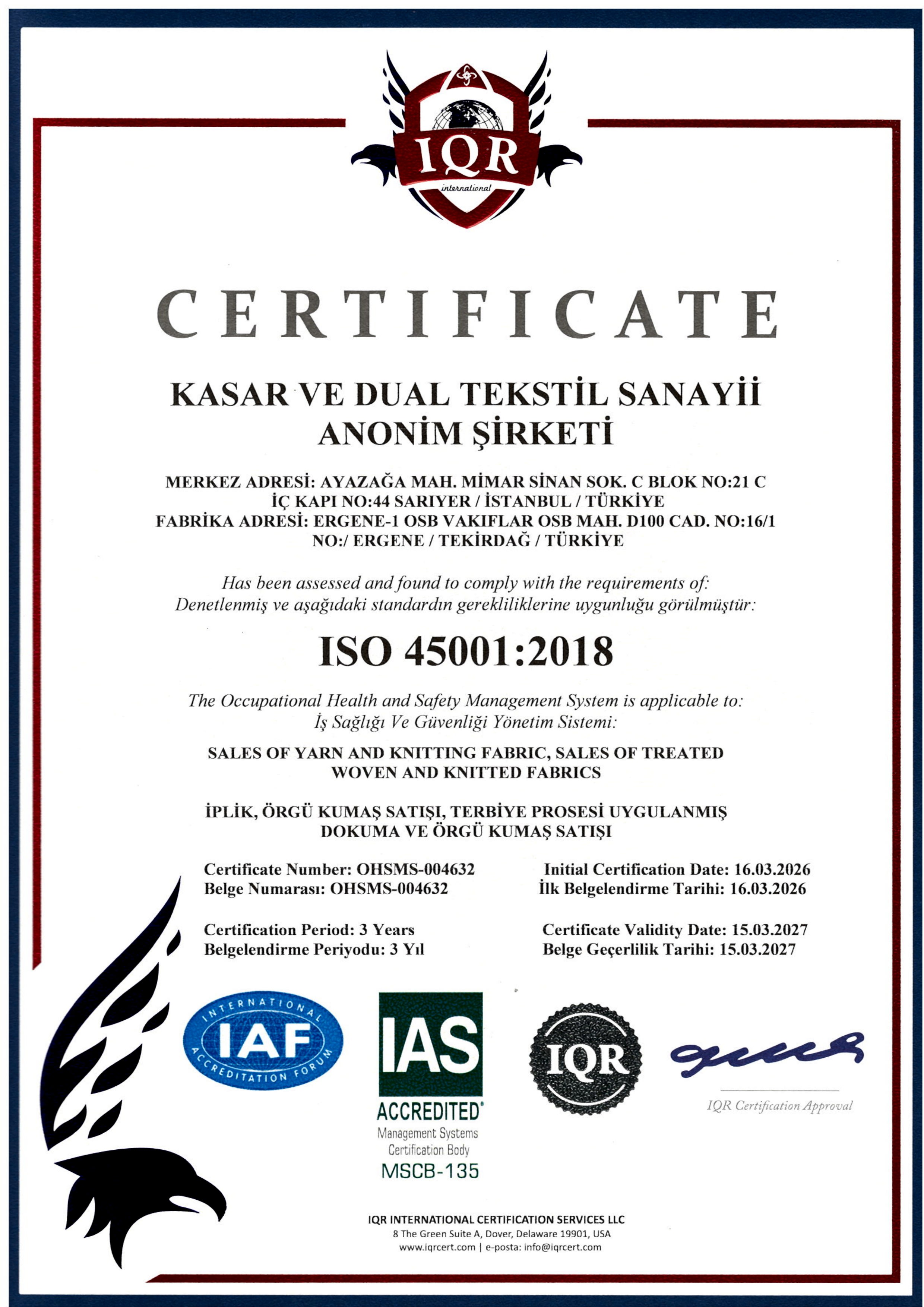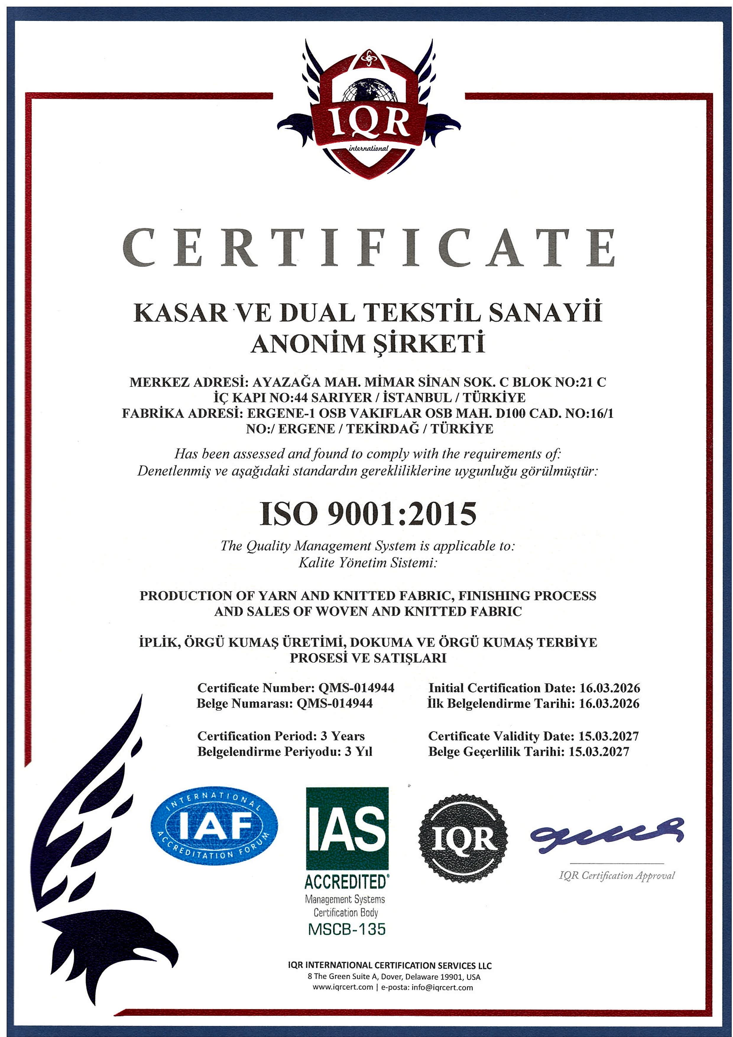Kasar ve Dual Tekstil San. A.Ş. “Kalite Politikası”;